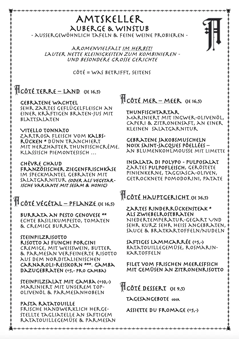 Wir zählen uns zu den Spezialitäten-Restaurants und sind in der Umgebung des Enzkreises, im Kraichgau und im Nordschwarzwald bekannt für unsere gehobene Feinschmecker-Küche. Wer das Besondere zu schätzen weiß, wird unsere außergewöhnlichen Gerichte und hochwertigen Zutaten lieben. Wir bieten alles für private Feiern, Firmenessen, Firmenincentives und Geschäftsessen. Genießen Sie erlesene Auswahlmenüs und eine saisonal wechselnde Frischeküche, die dem natürlichen Pflanzenrhythmus folgt. Unsere authentische französische und „echte“ italienische Küche wird umschmeichelt von französischen Grand Cru Weinen, Vino Nobile di Montepulciano, Supertuscans, sowie Weine aus Sancerre, der burgundischen Côte d´Or, dem Chablisienne, Bourgogne Chardonnay, Aligoté & Pinot Noirs, Vallée du Rhône, Minervois, Costières de Nîmes, Brunello di Montalcino, Amarone della Valpolicella, Soave Classico, Orvieto Classico Superiore, Romagna-Sangiovese, Barolo, Barbaresco, Pelaverga, Chianti Classico , Graves u.a.m..