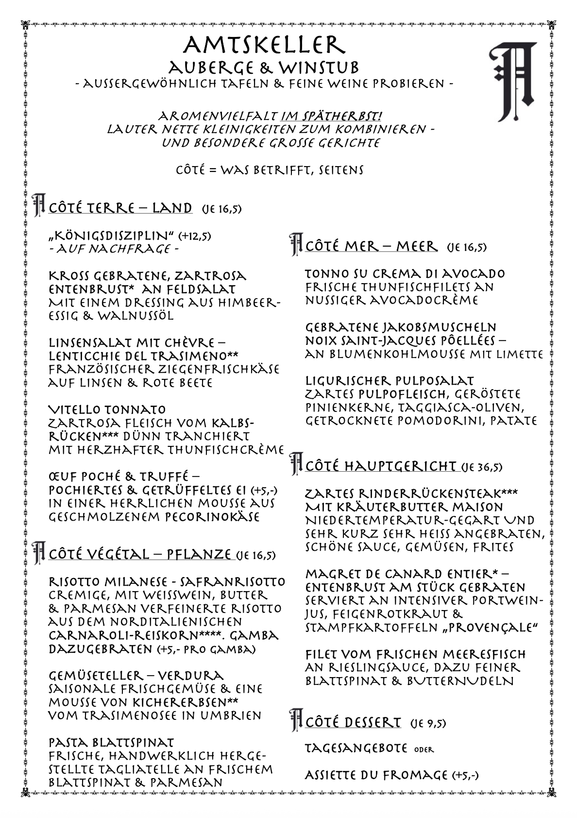 Küchenzeiten 18:00 Uhr – 21:00 Uhr (letzte Bestellannahme). Sonntag letzte Bestellannahme 13:30 Uhr